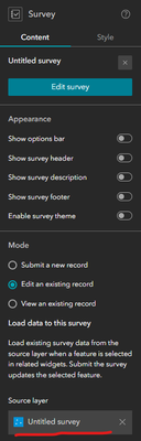 Could you confirm if that mode is set to - "Edit an existing record" and the source layer is set to the survey123 layer?