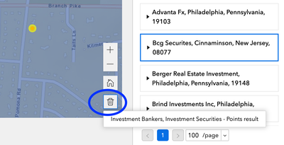 How can I clear this selection from the map widget? I ran another query, and the map shows in yellow the previous selection and the new one. I tried Clear Selection, but the selectin counter shows a 0, because nothing was selected.
