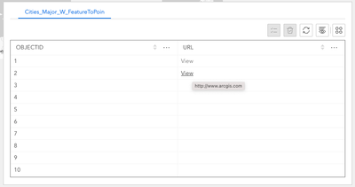 Hey everyone, coming in here to ask how it would be possible to enable hyperlinks in the Experience Builder table widget. The links are working fine in my configued popup, but I would like users to be able to click on the link in the table widget to save time. The screenshot makes it clear that URLs in cells are supposed to automatically shorten and become live links, however it's not working in the widget. The link is http, could that be the reason? I'm open to any suggestions.