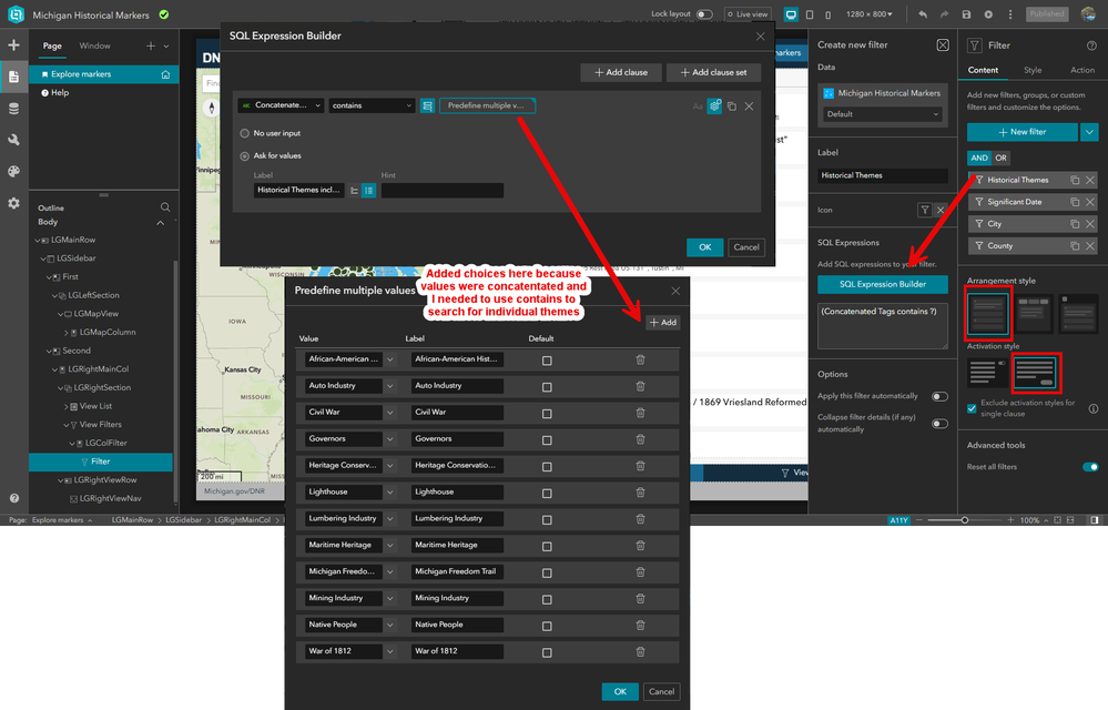I want to create the type of filtering functionality that I saw in this experience (Michigan Historical Markers).