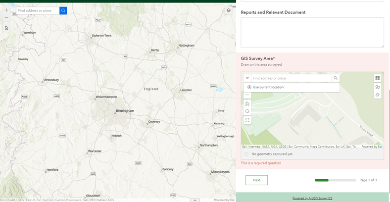 I have built a survey123 form where part of the first actions involving drawing round the area surveyed. I was wondering whether it is possible to link the map in the survey123 form to the EB app its embedded in, or whether you can draw the survey area on the EB app instead of within the embedded survey but it still pull these attirbutes and data over?