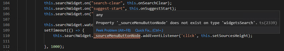 Hi Dave, the _sourceMenuButtonNode is a private property on the Search Widget, when you are debugging, you can inspect the properties of the SearchWidget and find it. This is the dropdown button which lets you select which search source you want to use.