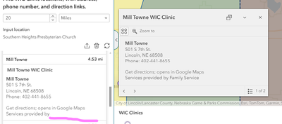 The issue is the results list in the Near Me widget is not showing all the information contained in the webmap popup.