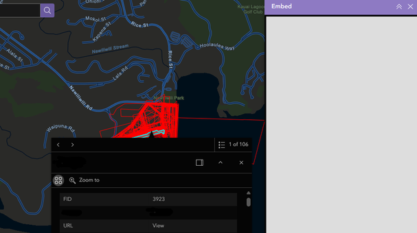 One problem however, and that's how the PDF displays. I have saved the PDF in Sharepoint and copied the URL and put it in a field in the layer's attribute table. When I click on a polyline, the attribute table opens with an opportunity to click on View in the URL field, but nothing shows in the Embed window. I am  wondering if text should pop-up in the embed window with a URL to the PDF that can be opened in a new window. Something like "Please click here to view the construction drawing."