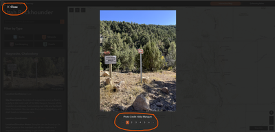 Additionality, you can see that the Utah Rockhounder experience has a button at the bottom right corner of the Image widget that says, "Show all photos". Clicking the button opens a new window with bigger photos in a carousel that shows the number of pictures and selection buttons at the bottom. (See image below)