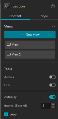Just created a blank new experience builder on ArcGIS Online and added the Section Widget and two views.  Tested and it seems that the Autoplay functionality is not working.  Is it only me or if there is any potential workaround?