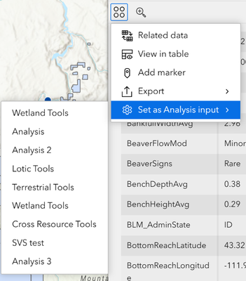 Not seeing any actions except to just open the side bar. Not seeing any actions off of Set as Analysis input also?