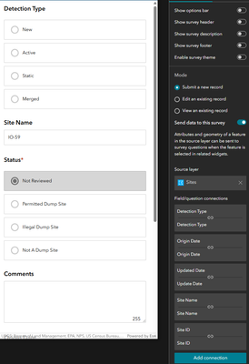 Any ideas why 1 connection does not send data to survey in the Survey widget in Experience Builder?
