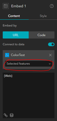 Connect the Embed widget to the data, choose the selected features view, and add an attribute containing the URL linked to the PDF or S123 report.