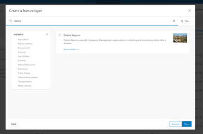 @Gisbert61The UI for creating new layers changed a little but you can still create the Debris Reports layer. You have to select the "Use a template" option now since it's not the default anymore.
