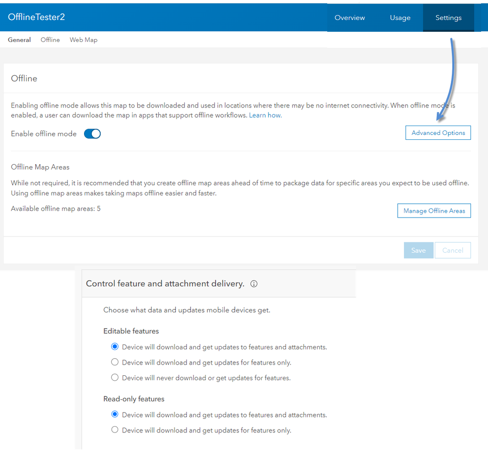 For the editor tracking bit, on the map setting page, click the feature layer.