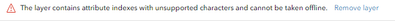 Has anyone figured out a solution for the Error that a "layer contains attribute indexes with unsupported characters and cannot be taken offline" - the only attribute indexes that exist on the layer are ESRI generated index for ObjectID, GlobalID, and the 4 editor tracking fields (Creation and Last Edits).