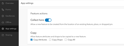 This can be configured in Field Maps Designer in the App Settings under Feature actions. Our documentation covers it in this section - Enable copying attributes and shape to a new feature