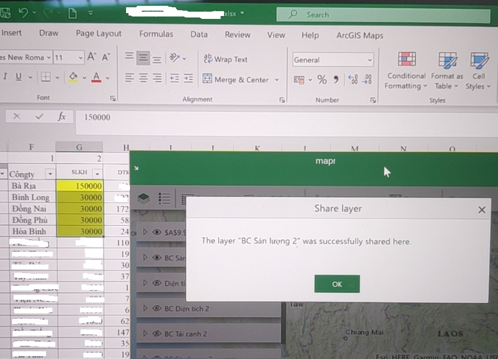 I using ArcGIS Enterprise 10.7.1, ArcGIS Maps for office 2020.1.2, MS Excel 365.