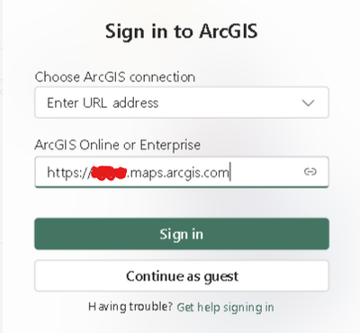 In the next screen enter your organisation account URL even if it is AGOL
