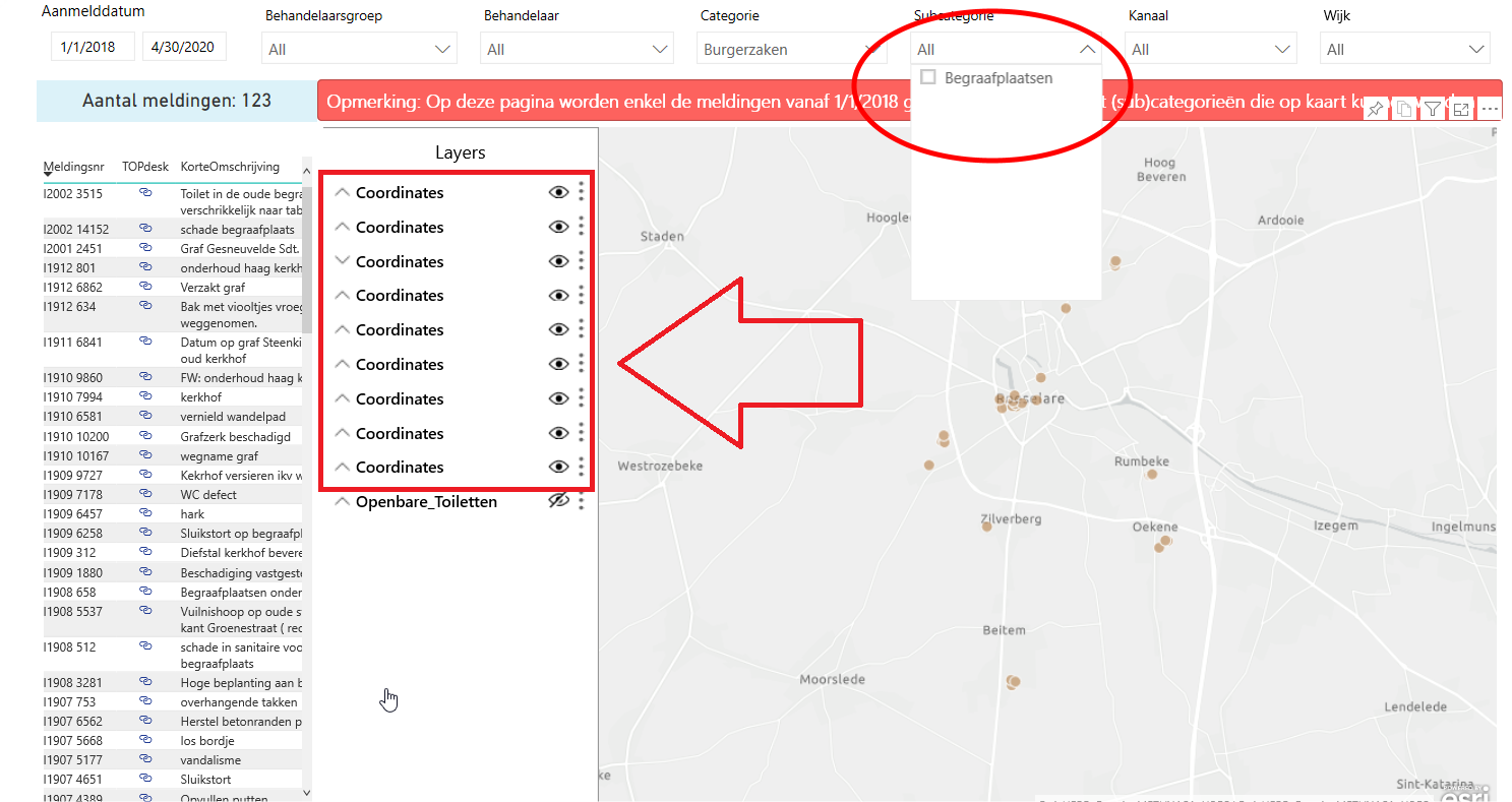 5) Each time I select a value in a slicer on top of the tab, the 'Coordinates' layer gets duplicated and dupiclated...