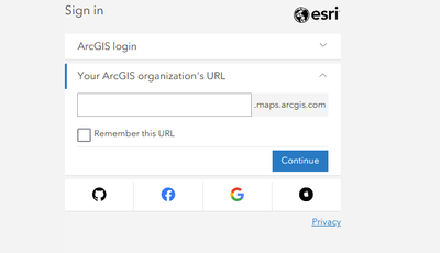 Then when I click on the orange sign in bar, I get this, both of which take me to our argis online account: