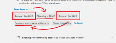 But on the page below the "parent" category (Tasman GeoHUB) is listed once for each sub category
