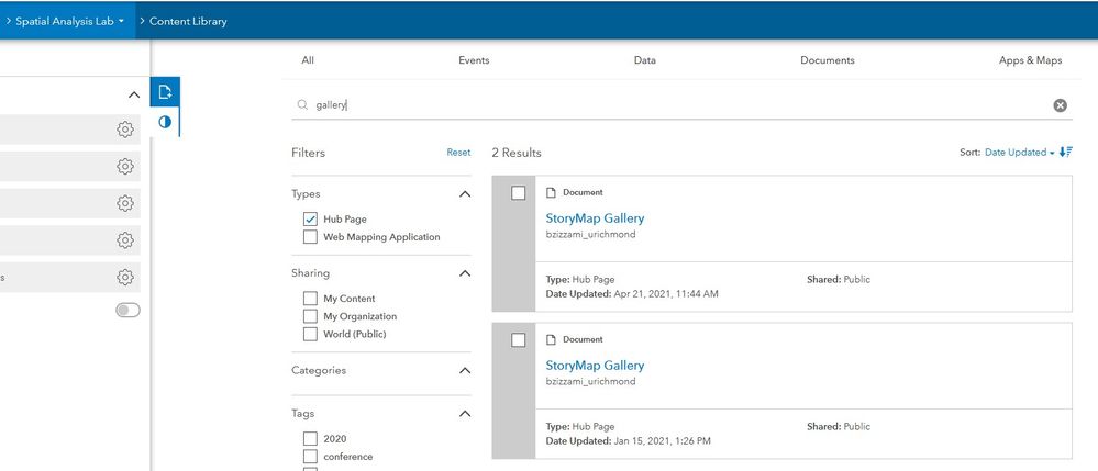 On the site's hub page, i changed the name of the original page to gallery1 and it's slug.