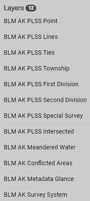 - BLM Alaska Public Land Survey System (PLSS) Cadastral National Spatial Data Infrastructure (CadNSDI)