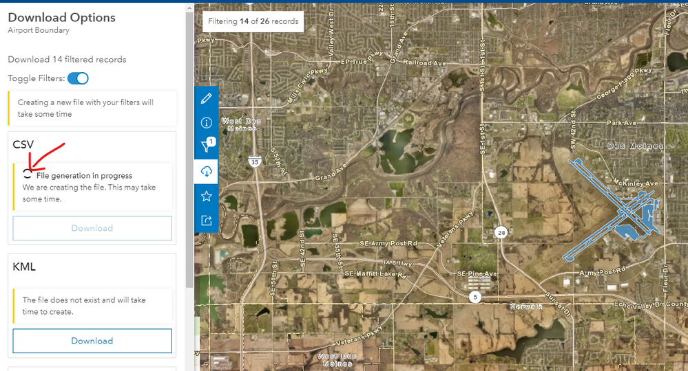 I wasn't seeing the Toggle Filters slider under Download Options; it has to be slid to on in order for the filter to be applied to the download. Others weren't seeing it either; finally, someone noticed it and pointed it out. It's there; however, there is something about the page layout that causes it to be missed.