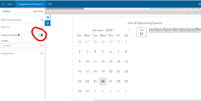 I have a HUB site with an Upcoming Events widget. I would like to display simply the list of events, not the graphic calendar. There is a slider under Options to show/not show the Calendar, but I am unable to slide it to the "Don't Show" position. It stubbornly remains enabled. How to I get rid of the big graphic calendar?