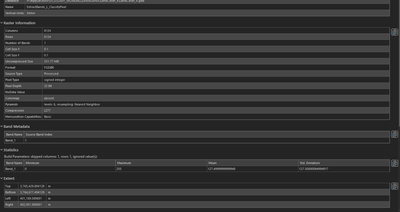 However, my output from that tool returns a raster layer that only has 0 or 255 values and not the distinct land cover classes. Here is what the output layer properties look like: