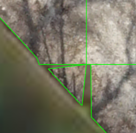 To resolve the issue on edges of the footprint, use the shrink footprints option (part of build footprints) to bring the footprints in a small amount.