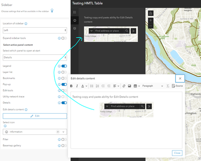 If I publish the Sidebar Instant app, the text and pasted image appear correctly.