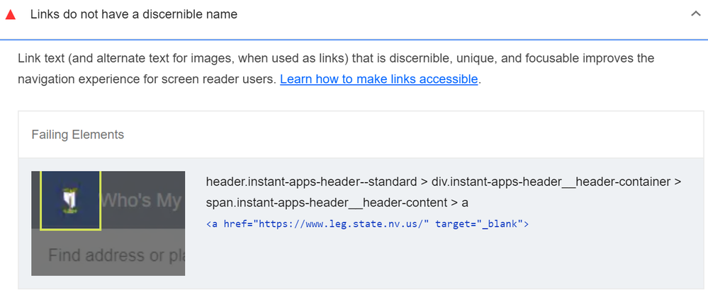 Also, is there a way to create a discernible name for the logo in the header of the Zone Lookup Instant App? This is an example of the logo/link we are using in a Nevada Legislature app: