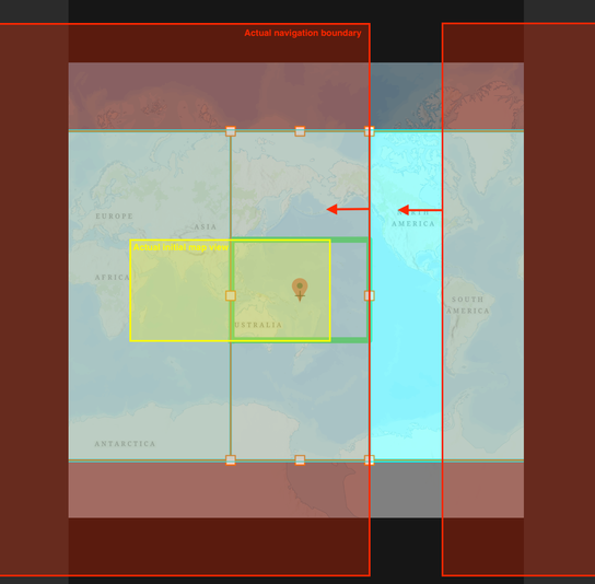 1. UI/UX issue: The Map view section controls the Boundary for app box (actually the default map view), while the Navigation boundary section controls the Scale of map view (actually the pan and zoom limit for the app). This is a very confusing way to label things.