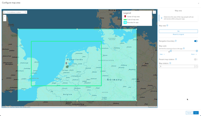 For sure, I see what you mean now. We currently have an issue when the web map is using a global scale in the component. Can you disable the navigation boundary -> zoom in on your map more -> click set map area > Then turn on the navigation boundary again? Then you should be able to configure the boundary correctly .