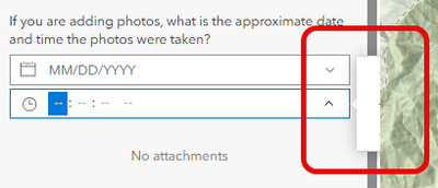 Using the Instant App Reporter template, when trying to select a time from a DateTime field, the time picker is displaying to the side and below the web map. As a result, I'm unable to select a time value. I can still manually type in values for hour, minute, second, am/pm, but cannot interact with the time picker. If you think it makes any difference, I have configured an editing form in the web map. The issue occurs both in the configuration and in the published app.