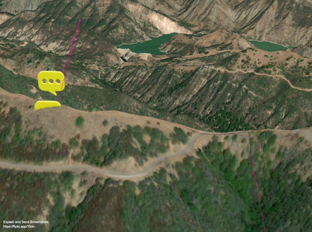 The app (flyxc.app) display the live track and some markers for messages and pilots: