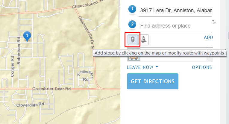 I have done this a few different ways. The first I create a context menu of the clicked location with one of the selections being adding the point to your directions. The second uses a button to click that adds the location to driving directions. The third method uses the current vehicle position and a call location. Both locations are added as stops and driving directions are calculated.