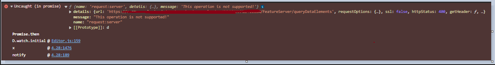 I don't understand why every time a new point feature is created with the editor widget in the app, the error message "This operation is not supported - FeatureServer/queryDataElements" appears in the console. However, the new feature is created without any further problems. I use ArcGIS SDK JS 4.28. But version 4.30 is exactly the same. Does anyone have any idea why this is happening?