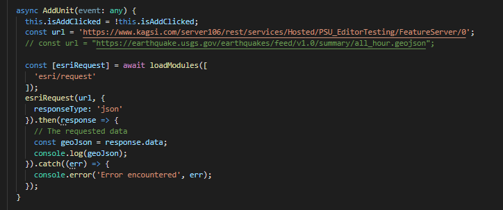 I'm using angular 8. And I'm sending an Esri request to a specific Url.