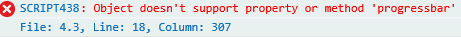 I am running into this error: "Object doesn't support property or method 'progressbar'" that the API is throwing when I am loading the API initially in IE 11 on a client's server machine via my application. I tested it on my own local machine and on the client's end user machine and it doesn't throw it, but for some particular reason it throws the error only in IE on the client's server machine it is on.