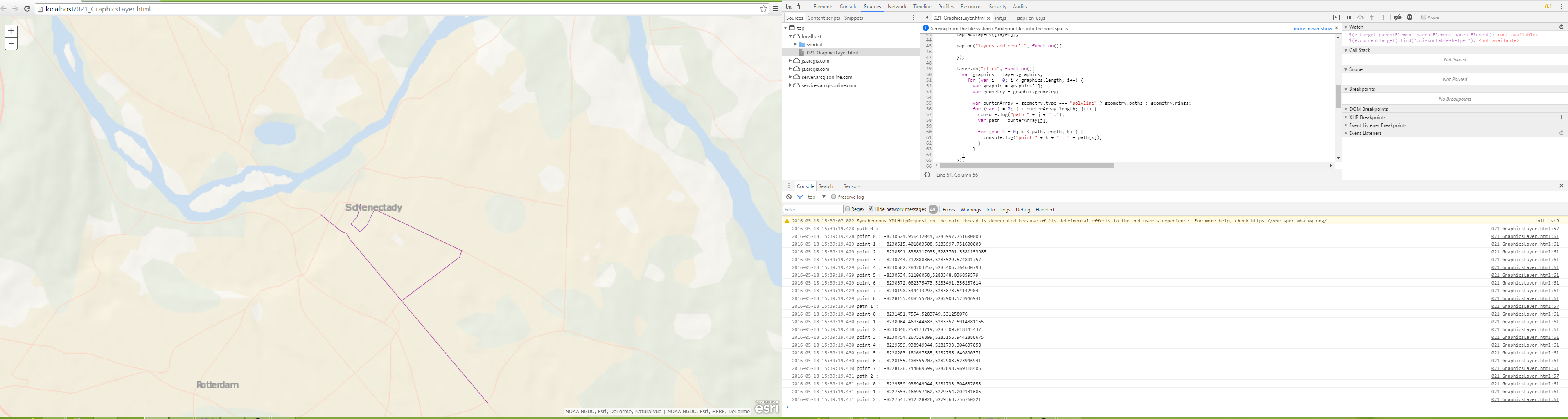 In the arcmap, the polyline has a path with 28 points, while the graphics layer return 3 paths and 20 points.