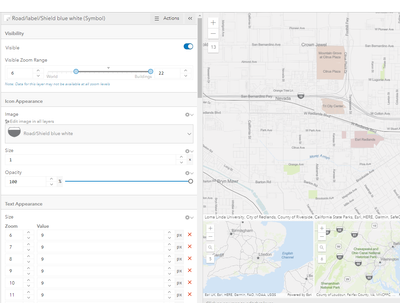 Hello, I made a basemap style using Esri's Vector Tile Style Editor for our organization. On the web map preview, I can see the highway symbols I made are rendering the selected font, Arial Bold, at 9 pt (correctly). This is set to be the same at all numbered zoom values.