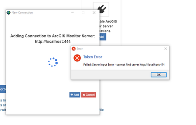 I have been unable to create a connection to the ArcGIS Monitor Server (10.8.1). I am using Port 444 and have confirmed that it is open. I am using Mongo DB 3.6. My server is 10.9.1 running on a single machine deployment (for local dev). I keep getting a Token Error. I have sifted through the 3 bullets in the help documentation here: https://enterprise.arcgis.com/en/monitor/10.8/administration/troubleshoot-connection-problems.htm. Here are the URLs that I have tried.