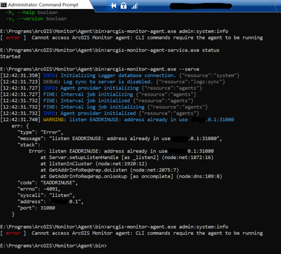 [ error ] Cannot access ArcGIS Monitor agent: CLI commands require the agent to be running.