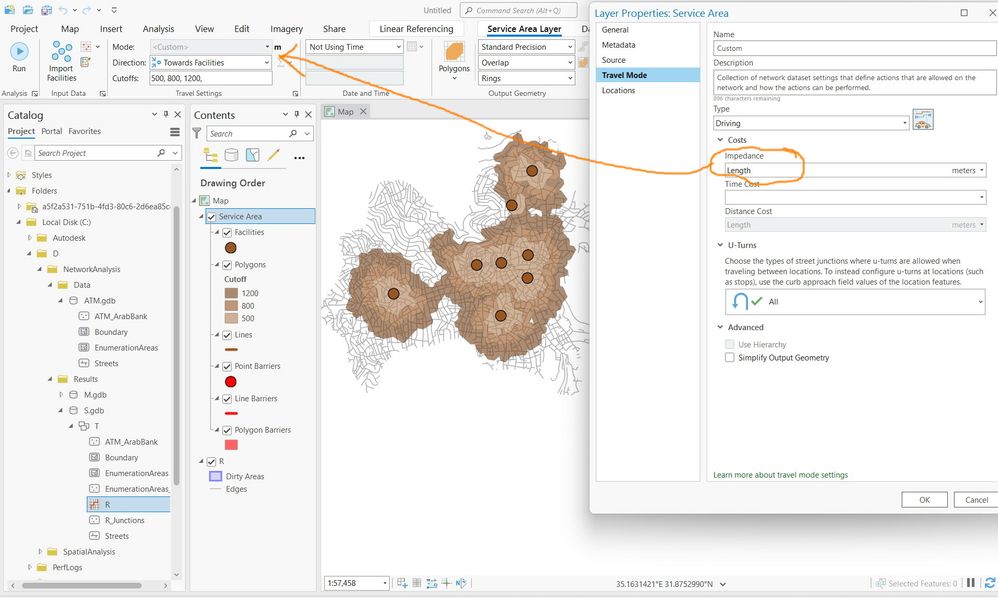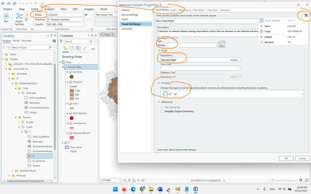 The “travel mode” option is not available in the ribbon under the “service area layer”, even though it is one of the most important settings that is visited frequently during analysis. It would be more helpful if this option was visible in the ribbon, as it would provide more context for the analysis being performed.