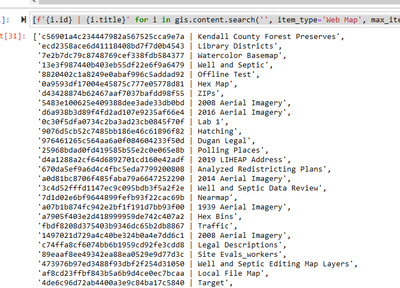 [f'{i.id} | {i.title}' for i in gis.content.search('', item_type='Web Map', max_items=-1)]