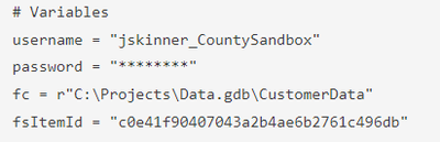 • fc = path to feature class used to update feature service
