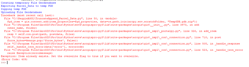 Overwrite ArcGIS Online Feature Service using Truncate and Append