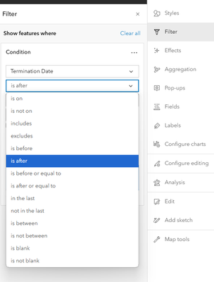 Say for example you have a live data feed of earthquake locations and want a map that shows all earthquakes from only this year. It would be nice if a filter condition existed like 'is in current date_unit' . I.e., a filter could be setup like [earthquake_date] is in current 'year', where 'year' is dynamic and changes with the system date. This way, the date filter on the webmap never has to be updated at the start of each calendar year.