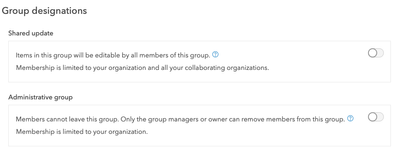 Group designations can only be modified when the group is created. We should be able to edit these, especially the shared updates after groups are created.