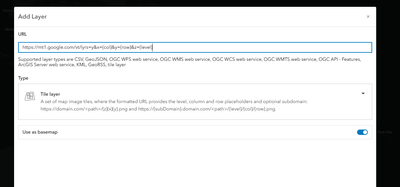 At the UC, I was shown how to add a Google Map Imagery Hybrid to a basemap by adding a new item and then adding it to the basemap gallery. Somehow I can't replicate it here. Can anyone help? thanks!