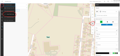 I want to add a note under my web map in ArcGIS Online and can't figure out how to do it. I've read map viewer use a sketch layer instead of map notes but I don't know how to add text to a sketch layer. Can someone please help me with this?